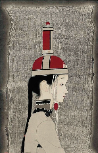 罗寒蕾 蒙古女孩 纸本水墨