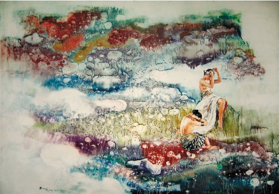 蔡江白 美与生活 72cm×101cm 玻璃版水彩画 1998年