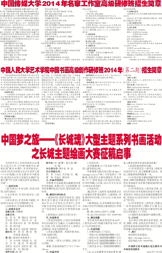中国传媒大学2014年名家工作室高级研修班招生简章