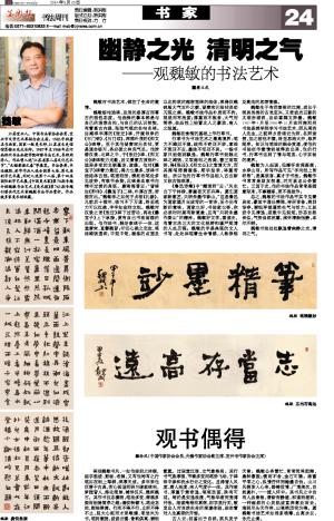 魏敏书法处处飘逸着幽静之光,清明之气。