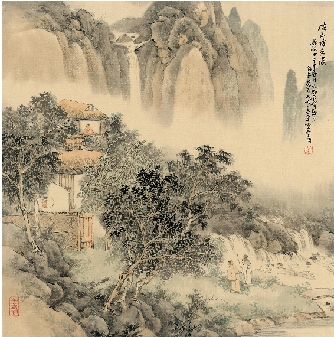 茹峰 溪山访友图 47×46cm
