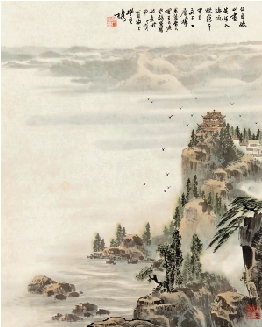 高适 登鹳雀楼 68.5×55cm 出版:《中国古代经典精华彩绘本。唐诗》,河北少年儿童出版社