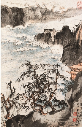 陆俨少 楚宫腊送荆门水 白帝云偷碧海春