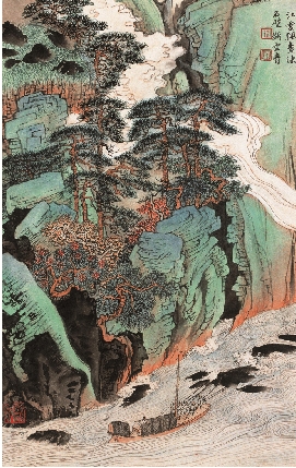 陆俨少 江云飘素练 石壁断空青