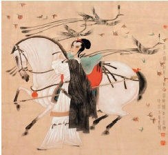 唐勇力 骏马仕女图 68×68cm