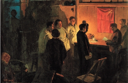 莫朴 入党宣誓 布面油画 118×170cm 1950年