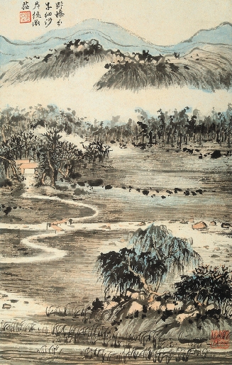 陆俨少 野桥分子细 沙岸绕微茫(册页)