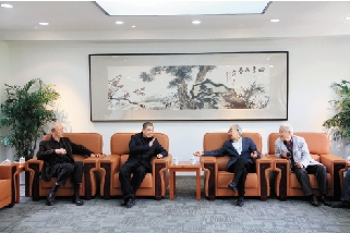 全山石艺术中心艺委会第一次会议,艺委会成员全山石教授、靳尚谊教授、许江教授、詹建俊教授(自右向左)。