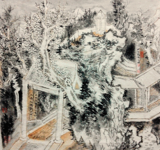编号:092010 陈天增 名园筑何处,仙境别红尘 68×68cm 中国画