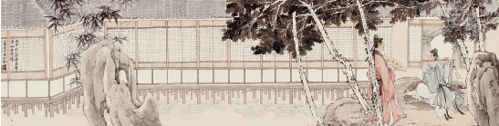 高云 园中悠横笛 彩墨纸本 34×136cm 2013年