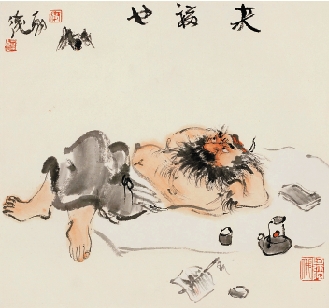 秦嗣德 来福 纸本设色 35×35cm 2014年