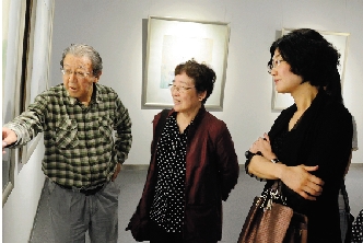 杜曼华(中)、李波(左)陪同淄博市副市长张庆盈参观画展