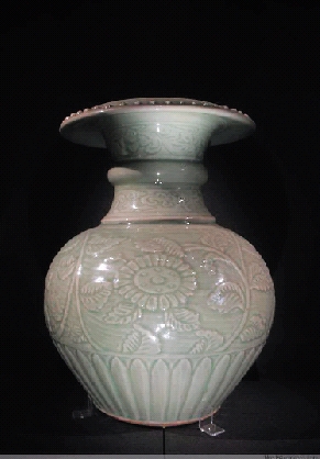 明代 龙泉窑青釉刻花石榴式尊