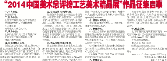 “2014中国美术总评榜工艺美术精品展”作品征集启事