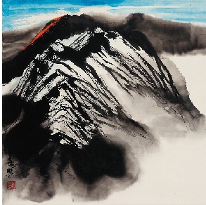 张长明 云山初晓 彩墨纸本 68×68cm 2014年