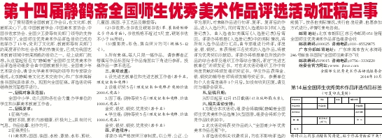 美术报 广告 00008 第十四届静鹤斋全国师生优秀美术作品评选活动征稿启事 2014-10-18 美术报2014-10-1800010 2 2014年10月18日 星期六