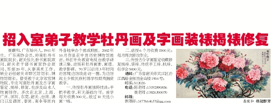 招入室弟子教学牡丹画及字画装裱揭裱修复