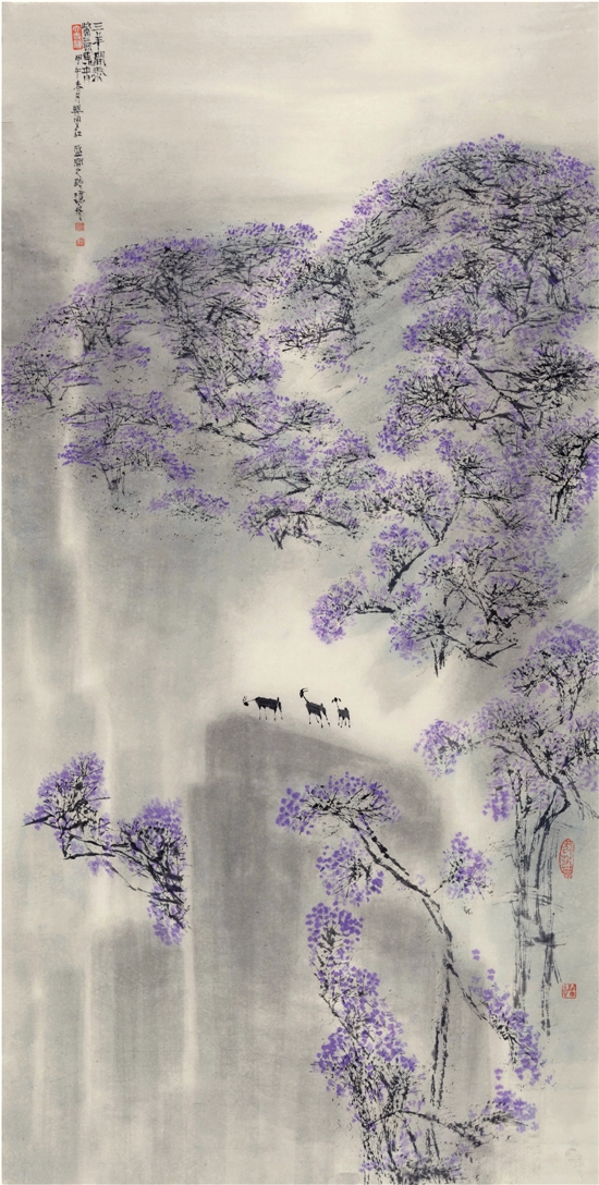 王隽珠 三羊开泰 紫气东来 137×69cm