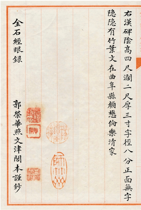 癸亥补钞《四库全书》本《金石经眼录》,钞录者名、印和藏者印鉴。