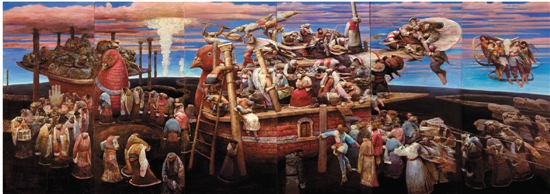 胡溧 女娲留下的两只鸟 470×1330cm