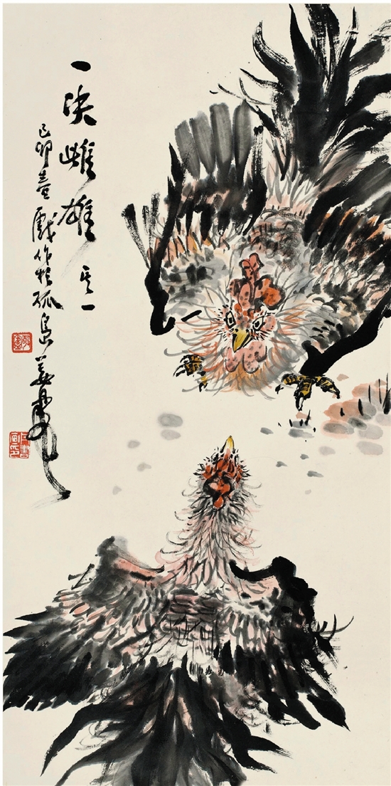 姜丹书 斗鸡图 66×33cm 约2.0平方尺 1939年作