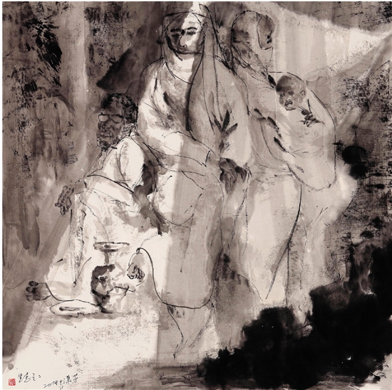 喻潇芳 生态之二 水墨纸本 68×68cm 2014年