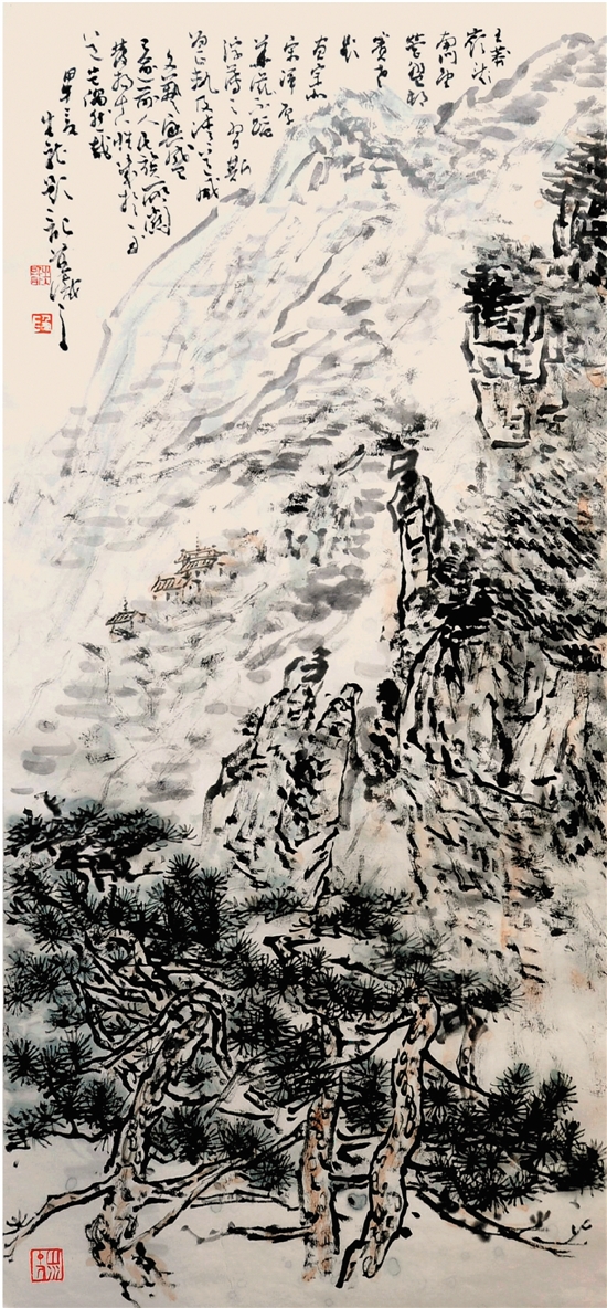 段生龙 王莽岭南门望营盘村 45×97cm