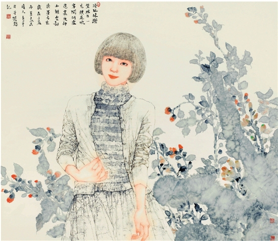 郝孝飞 少女 中国画