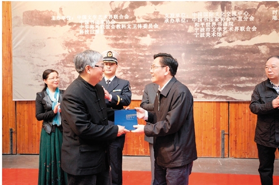 宁波市人民政府秘书长王建社为张飙先生颁发捐赠证书