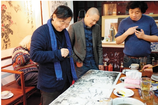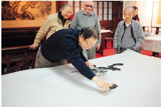 35年前,沙孟海、余任天、诸乐三、程十发、朱恒、郭仲选等曾为西泠书画院诞生合绘过盈丈作品,诗墨风流,精神勃发,为逢时兴旺起来的杭州书画界增添了一道风景。35年过去,许多老一辈书画家驾鹤西去,他们的晚辈及学生弟子则做好了薪火相传的工作,其中的俊彦都是杭州书画界的中坚力量,沉实稳进,德才兼备,不负前贤厚望,不负湖山春信。即使是35周年大庆,西泠书画院仍然保持了一贯的低调简朴,正是当前提倡的戒奢靡的正能量表现,用西泠书画院常务副院长王丽芳的话就是:“大家聚聚热闹一下,清茶一杯,联络联络感情才是最主要的。”