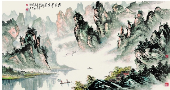 凌文虎 张家界宝峰湖 国画 96×180cm