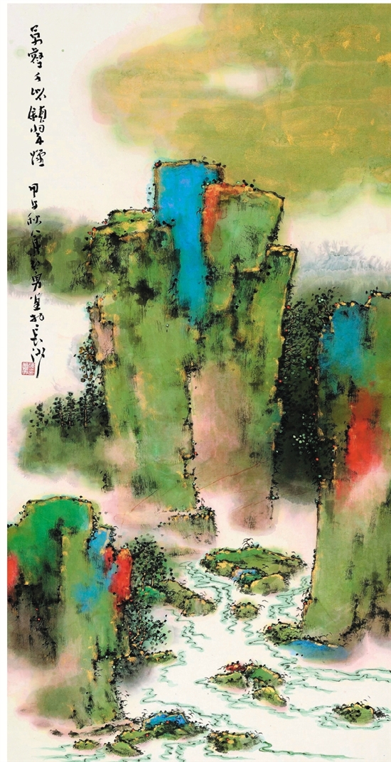 谭智勇 万壑千岩锁翠烟 国画 136×68cm