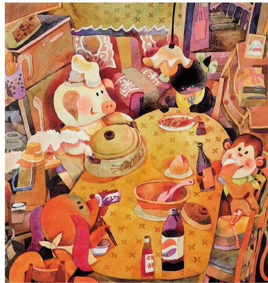 江健文 小猪的生日宴会 33×31cm 儿童美术银奖