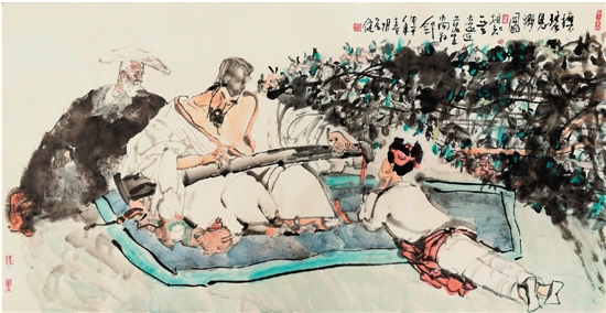 刘健 抚琴思乡图 136×68cm 纸本设色 2014年