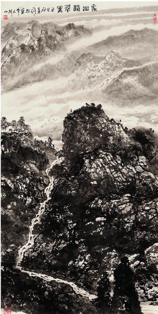 张松 家山积翠图136×68cm