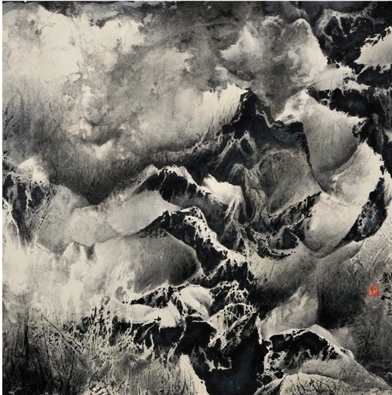 刘国松 群山 纸本水墨 92×92cm 2001年