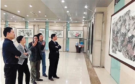 安徽省政协副主席、文化厅副厅长李修松(右一),广德县县长葛建荣(右四)等参观画展
