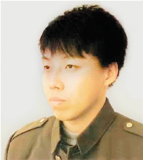 素描:根据照片作画。男青年侧目四分之三头像,着军装。