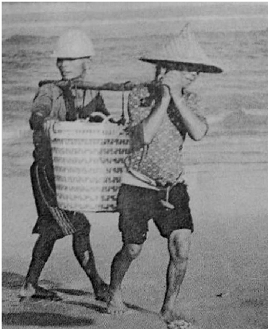 速写:根据照片作画。两人抬东西的组合速写。