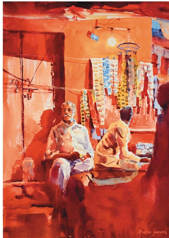 拉梅什·伽瓦尔(印度) 槟郎店吸烟者 36×25cm