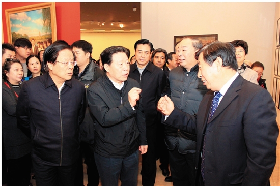刘大为陪同孙家正、蔡武、黄坤明、赵实、董伟等领导和嘉宾参观展览。