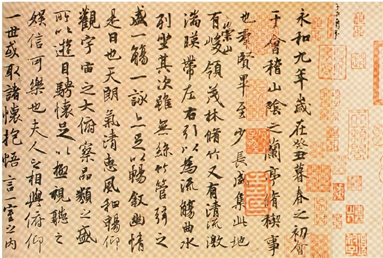 东晋王羲之《兰亭序》(神龙本)局部上的鉴藏印