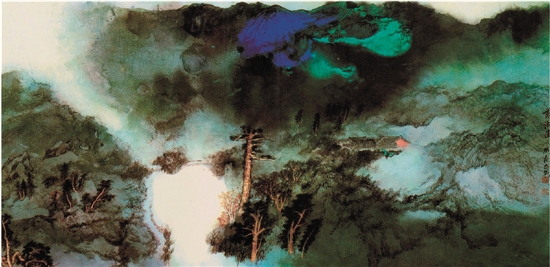 张大千 慈湖图 90×180cm 1976年