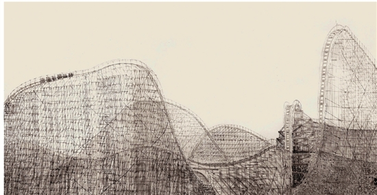 毛冬华 城市乐园 纸本水墨 70×135cm 2014年