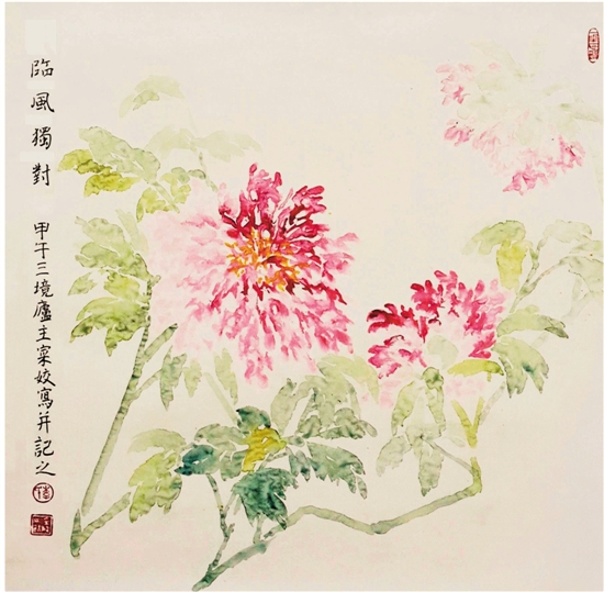 李采姣 临风独对 66×66cm 纸本没骨 2014年