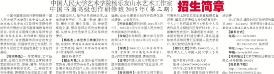 【报名程序】1.学员可上网下载也可来电向本院索取招生简章和报名登记表,填写后将表格与身份证复印件、个人2寸免冠蓝底照片6张和个人代表作品及近期创作图片资料3张、个人画集或发表图片,邮寄或面交本院。2.本院对相关资料进行审核,确认后通知学员将培训费汇至中国人民大学账户,凭汇款凭证办理手续。