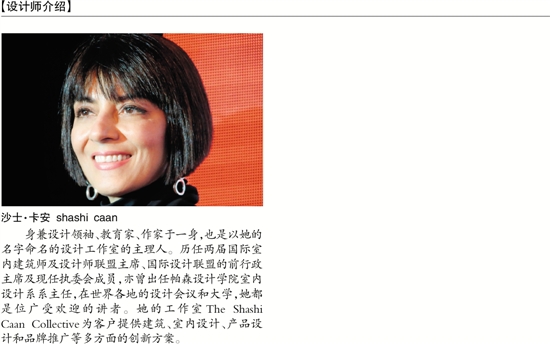 身兼设计领袖、教育家、作家于一身,也是以她的名字命名的设计工作室的主理人。历任两届国际室内建筑师及设计师联盟主席、国际设计联盟的前行政主席及现任执委会成员,亦曾出任帕森设计学院室内设计系系主任,在世界各地的设计会议和大学,她都是位广受欢迎的讲者。她的工作室The Shashi Caan Collective为客户提供建筑、室内设计、产品设计和品牌推广等多方面的创新方案。