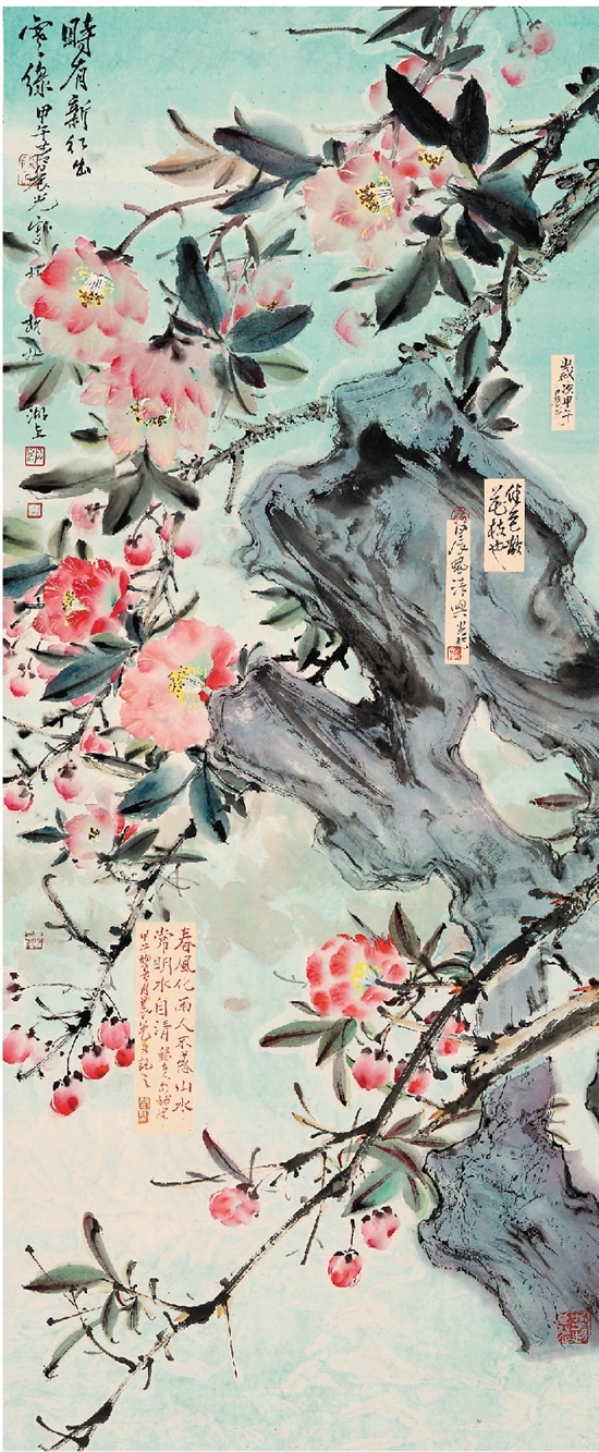 段晨光 新红出寒绿 118×46cm 纸本水墨
