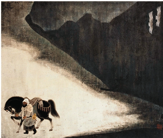 谢振瓯 天池饮马 82×100cm 纸本 1984年