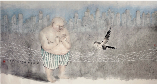 沈军 最后的舞者之一 90×180cm 设色纸本 2013年